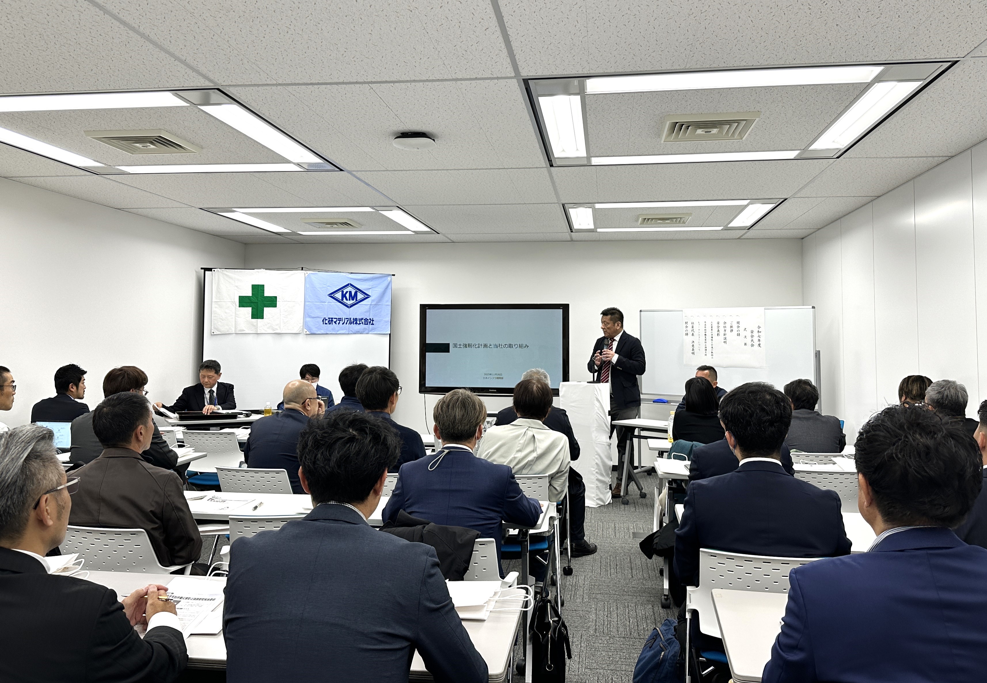 今年の安全大会を取材し、建設工事部と協力業者の皆さまが「安全」というテーマに対して真摯に向き合っている姿を拝見し、私自身も安全意識を再認識する良い機会となりました。「注意していれば防げる」という精神論ではなく、「誰にでも起こりうることである」という前提に立ち、どうすればミスが事故につながらない仕組みを作れるか。改めて考えるきっかけとなりました。特に、現場で頻繁に使用される機材の適正使用に関する講話や、過去の事故事例の共有は、日々の作業における「慣れ」や「油断」が大きなリスクにつながることを具体的に示していました。このことは、建設現場に限らず、私の所属する部署での日常業務にも通じると感じています。例えば、IT機器などの重い機材を運搬する際には、つい無理な体勢になりがちです。今回の大会で得た「安全を最優先する意識」と「声掛けの重要性」を心に留め、部署内の作業環境でも怪我のないよう気を付けていきたいと改めて思いました。 化研マテリアルがお客様へ提供する「安心・安全な施工」は、こうした地道な意識の積み重ねから生まれます。この大会を通じて、年末年始の繁忙期も無事故で乗り越えられることを願います。